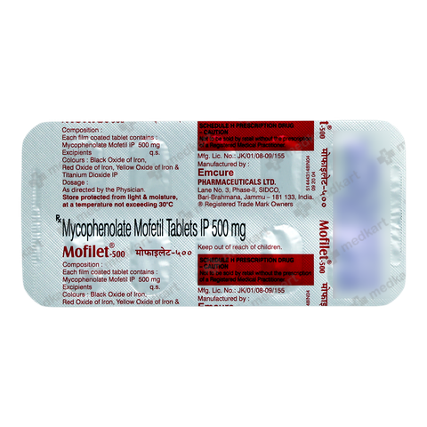 Mofilet 500 Tablet belongs to a class of medicines called immunosuppressants, used to prevent organ rejection (e.g., kidney, heart, or liver) after transplantation. It works by suppressing your immune system, ensuring it does not attack the transplanted organ.